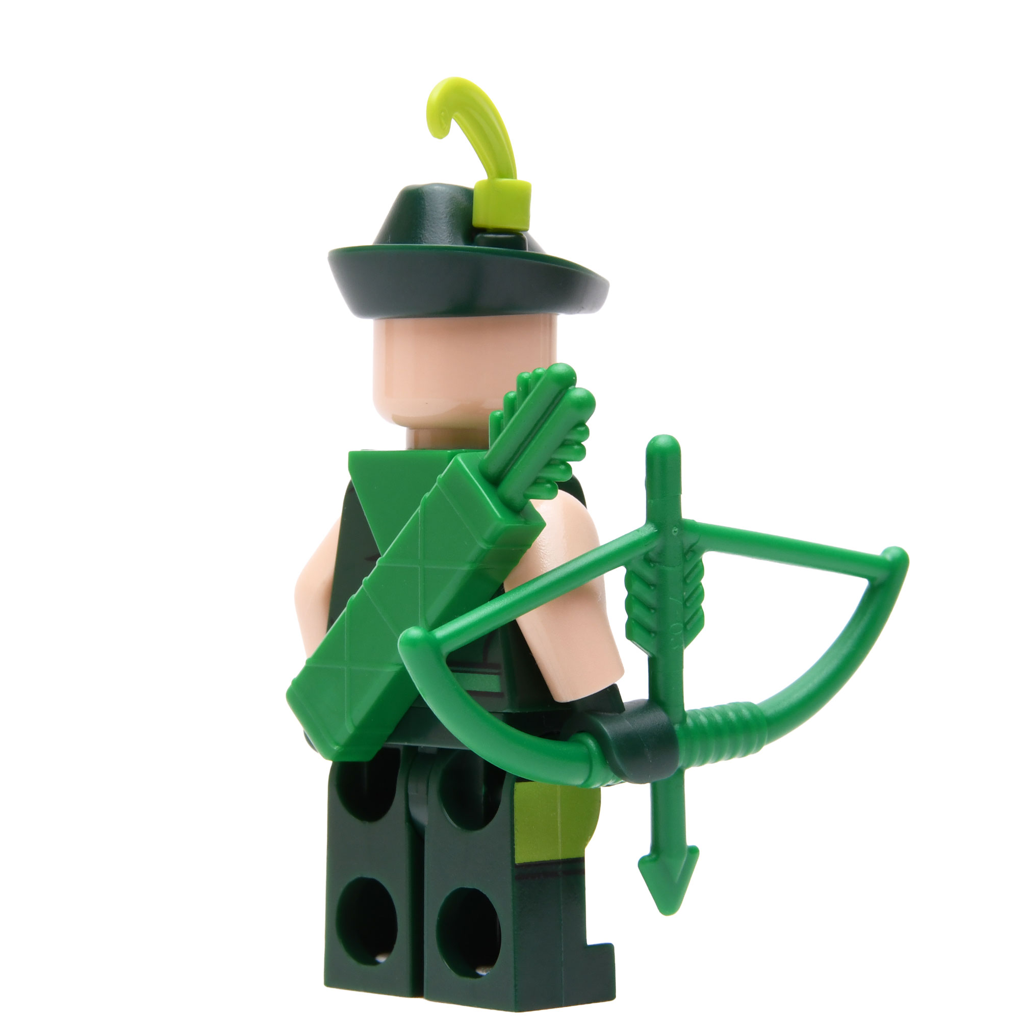 Green Arrow met zijn iconische groene hoedje, pijlenkoker en boog.